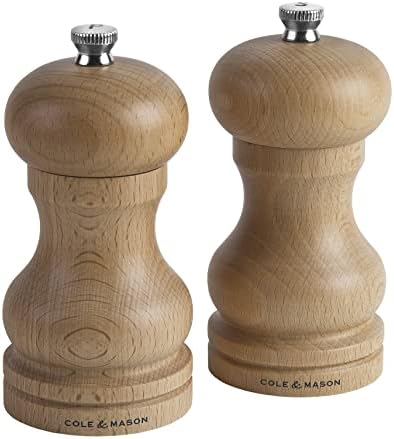 Cole & Mason Beech Capstan Moulin a Sel, Broyeur de Sel, Bois Clair, Moulin à céramique Ajustable, Bois de Hêtre Naturel, 120mm, Comprend 1 x Moulin, HA0425P