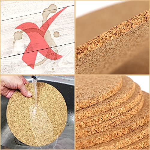 com-four® 8x sous-verres ronds en liège, Ø 19 x 0,5 cm, sous-verres ronds pour casseroles, poêles, cuisine et ménage, résistants à la chaleur