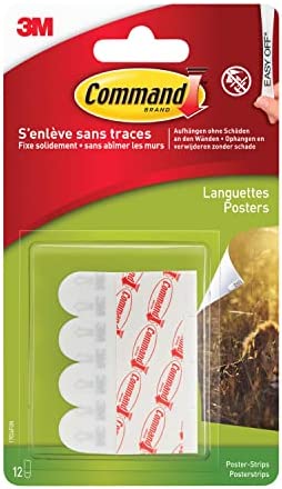 Command Bandes de Suspension pour Petites Photos, Lot de 12 Bandes Adhésives, Blanches – Fixation sans Dommage – Pour Posters, Cadres et Miroirs