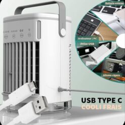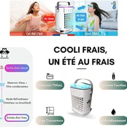 Soyez le premier à laisser votre avis sur “COOLI FRAIS Climatiseur Mobile Sans Evacuation, Clim’ Tactile 2024 USB Type-C Portable, Double Reservoir Eau + Glace 700mL, 4 Vitesses / 2 modes de refroidissement (fraîcheur & brouillard), Silencieux”