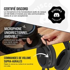 - Commandes de volume et de sourdine en supra-aural : Les commandes de volume et de sourdine en supra-aural permettent d’effectuer des réglages à la volée sans vous distraire de vos sessions de jeu