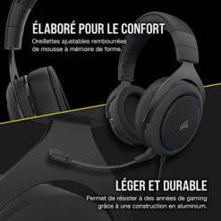 Détails: Conçu pour durer grâce à sa conception légère et robuste, le casque gaming CORSAIR HS50 PRO STEREO est à la fois garant de confort et de qualité, avec ses coussinets à mémoire de forme et ses transducteurs audio en néodyme de 50 mm personnalisés. Le microphone unidirectionnel antibruit amovible capte votre voix avec clarté et précision, et le connecteur audio 3,5 mm garantit la compatibilité avec n’importe quelle plateforme, dont votre PC, Xbox One, PS4, Nintendo Switch et autres appareils mobiles. Avec ses commandes de volume et de sourdine en supra-aural pour des réglages audios aisés, le HS50 PRO est élaboré pour le confort et conçu pour le combat.