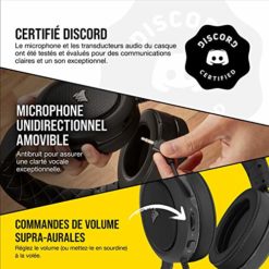 Détails: Conçu pour durer grâce à sa conception légère et robuste, le casque gaming CORSAIR HS60 PRO SURROUND est à la fois garant de confort et de qualité, avec ses coussinets à mémoire de forme et ses transducteurs audio en néodyme de 50 mm personnalisés. Le microphone unidirectionnel antibruit amovible capte votre voix avec clarté et précision, et le connecteur audio 3,5 mm plaqué or garantit la compatibilité avec votre PC, Xbox One, PS4, Switch, etc. Profitez d’un son surround 7.1 immersif sur PC avec l’adaptateur USB inclus, optimisé par le logiciel CORSAIR iCUE. Avec ses commandes de volume et de sourdine en supra-aural pour des réglages audio aisés, le HS60 PRO est élaboré pour le confort et conçu pour le combat.