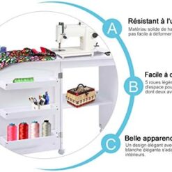 COSTWAY Armoire pour Machine à Coudre Pliante, Table de Couture avec 3 Etagères pour Bobines et roulettes verrouillables en Bois (Blanc)