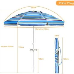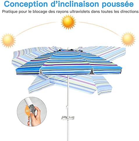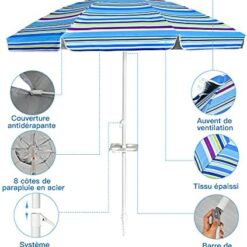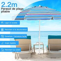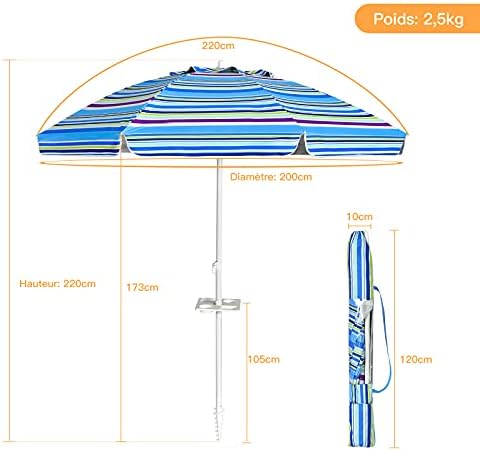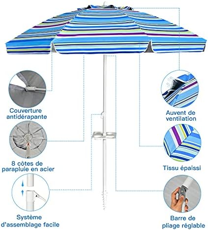 Soyez le premier à laisser votre avis sur “COSTWAY Parasol de Plage avec Porte-Gobelet, Parasol de Jardin Extérieur Inclinable, 200cm, Rond, Protection Solaire UPF50+, avec Pied d’ancrage à Visser & Sac de Transport (Bleu)” Annuler la réponse