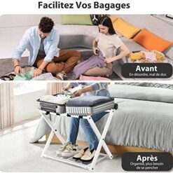 Soyez le premier à laisser votre avis sur “COSTWAY Support de Valise Lot de 2 Porte Bagages Pliable 68x43x58CM avec 2 Etages et 4 Sangles Rangement pour Bagages Pliant, en Métal Noir pour Chambre, Domicile, Hôtel. (Blanc)” Annuler la réponse