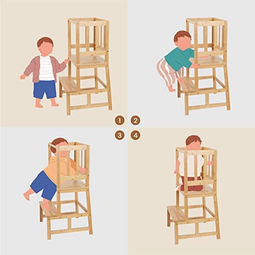 COSYLAND Tour d Observation Enfant, Tour d’observation Montessori Certifiée CPC, Tour d’apprentissage en Bambou Naturel, Structure Anti-basculement Plus Stable