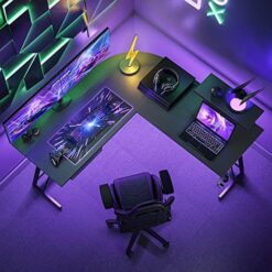CubiCubi Bureau d’angle Gamer Gaming Informatique – 130 * 130 cm Table en Forme L avec Support d’écran, Crochet pour Casque, Rangement Tiroir, pour Etudier, Jouer, Travailler, Chambre, Domicile Noir