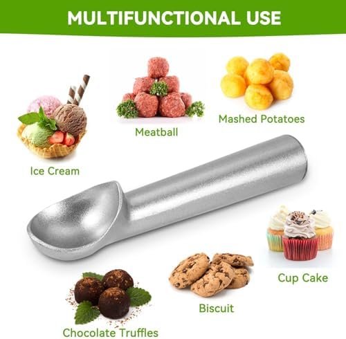 Cuillere a glace,Cuillère à Glace 4cm,boule a glace, cuillere glace boule,boulier a glace, portionneur à glace,Antigel portionneuse à glace, Cuillere a glace Professionnelle en Aluminium(argent)