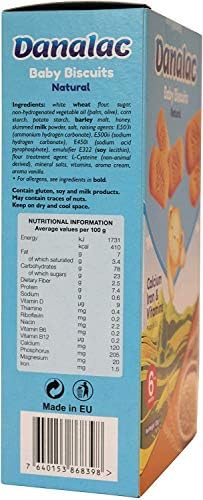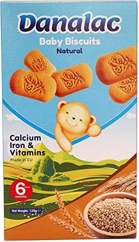 Danalac, Biscuits naturels pour bébés en-cas avec amuse-gueules pour les tout-petits de 6 mois et plus avec calcium, fer et vitamines, 120 g (Natural)