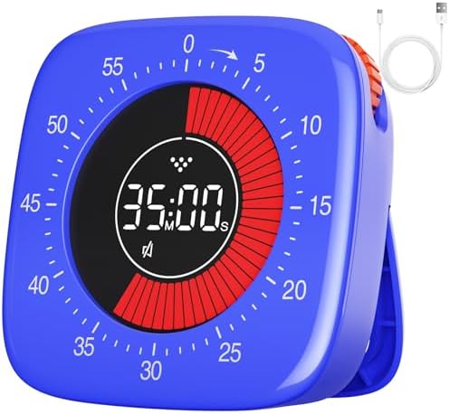 Dealswin Minuteur Visuel Rechargeable, Timer Numérique avec 4 Modes d’alarme, Minuteurs Compte à Rebours de 60 Minutes Timer Enfant Minuterie visuelle pour Enfants Apprentissage Cuisine(Bleu)