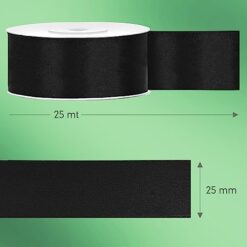 Decoraparty Ruban Noir de double Satin 25 mm, Bobine 25 mètres pour Décorations de fête, Bonbonnières, Gâteux, Fleurs, Faveurs de Mariage, Idées Cadeaux, Cartes de vœux Anniversaire et Nouvel An