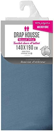 douceur d’intérieur, Drap Housse (140 x 190 cm) Oscar Bleu Nuit, Microfibre Unie