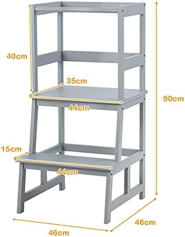 DREAMADE Tour d’Apprentissage, Tour d’Observation Montessori avec Accoudoir Arrondi, Marchepieds Escabeau pour Enfants en Bambou avec Structure Stable, pour Cuisine,Salon,Chambre Bébé (Gris)