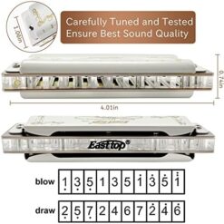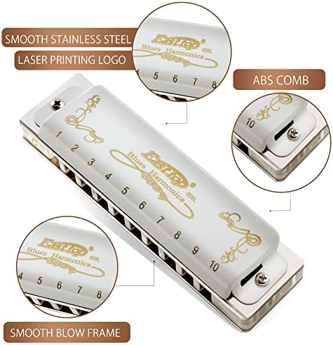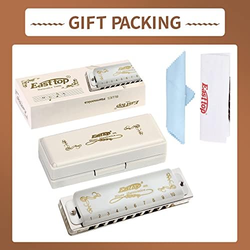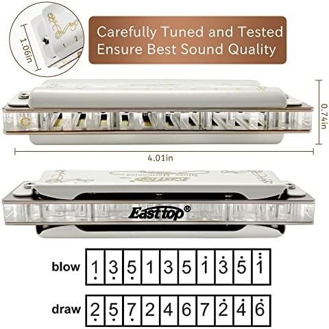 East top Harmonica Adulte Diatonique en Do 20 tons T008L avec Couverture Blanc, Harmonica Blues Diatonique en do, harmonica diatonict pour Débutants et étudiants, comme meilleur cadeau