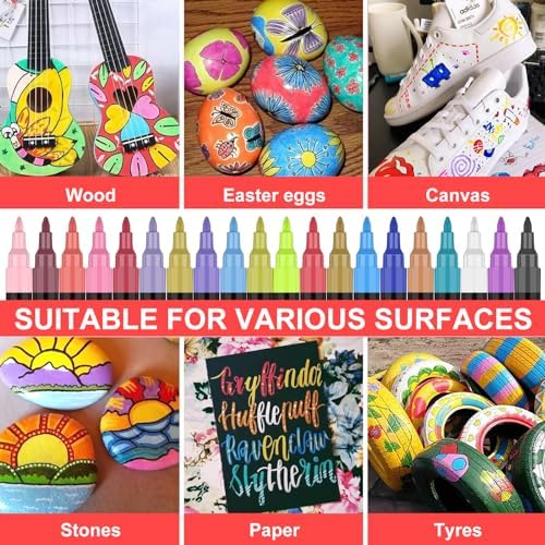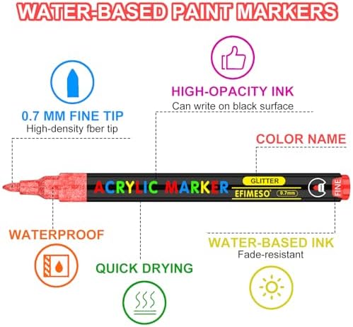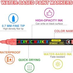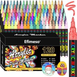 Efimeso Set De Feutre Acrylique – 120 Couleurs Marqueur Acrylique Pour La Peinture Des Rochers, Céramique, Pierre,Verre, Bois Et Métal, Feutre Peinture Acrylique 0.7mm Pointe Extra Fine Stylos