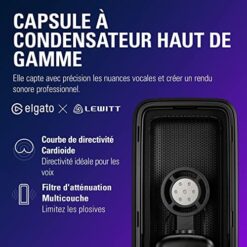 Elgato Wave:3 – Micro à condensateur USB de qualité studio pour streaming, podcasts, gaming et télétravail, logiciel de mixage gratuit, plug-ins d’effets, anti-distorsion, plug & play sur Mac et PC