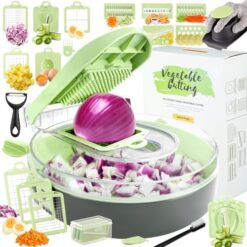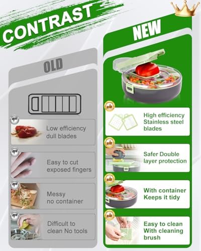 Enleber Coupe Legumes Multifonctions,Coupe Legumes Manuel Coupe Legume Manuel à Lames Remplaçables,Coupe Frite – Cube Carotte Concombre Oignons Tomates Fruits