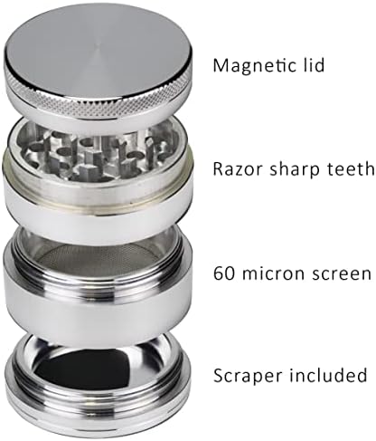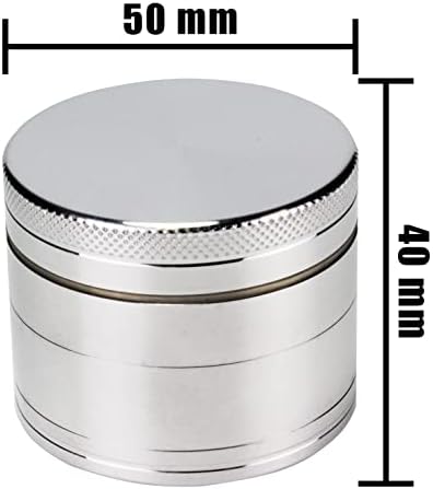 Evergreen Labs Grinder en Métal, Broyeur à Epices et à Condiments, 100% Aluminium, 4 Pièces, Argentées, 50 mm