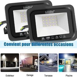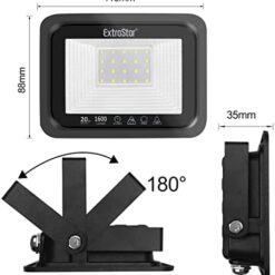 EXTRASTAR Projecteurs LED Extérieur 20W, IP65 Etanche, 1600LM, Spot LED Extérieur, 6500K Blanc Froid, Eclairage de Sécurité, pour Jardin Terrasse Garage Patio Grange Cour, Lot de 2
