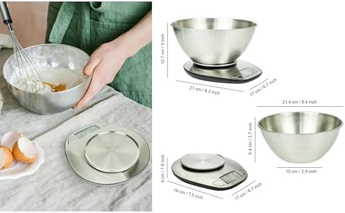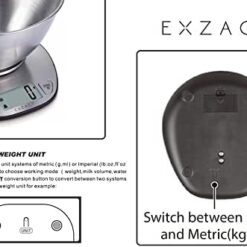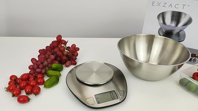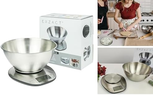 EXZACT Balance de Cuisine Électronique Multifonctionnelle Précise avec Grand Écran Numérique et Bol à Mélanger en Inox – Max 5 kg (EX4350)