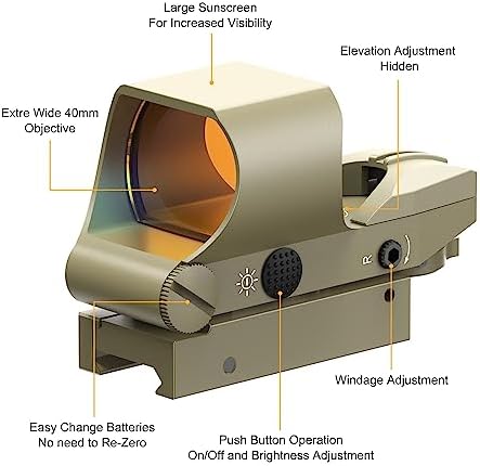 Feyachi RS-30 Viseur Point Rouge Vert HD avec Luminosité Réglables Tactique Viser Airsoft Visee Holographique avec Picatinny 20 mm/22 mm