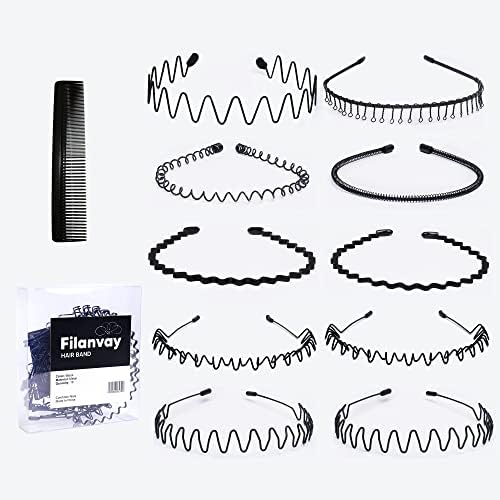 Filanvay Serre Tete Homme 10 Pcs – Sert Tete Homme Assorti – Haute qualité, Métal anti-glisse Serre Tete Noir – Avec un peigne en cadeau – Unisexe – Différentes tailles et modèles