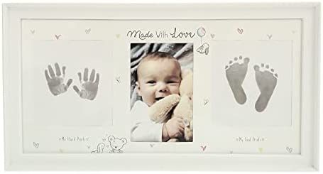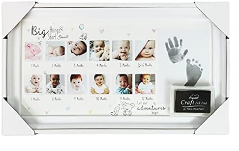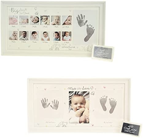 quantité de First Steps Lot de 2 cadres photo pour bébé 12 mois avec kit d'empreintes mains et pieds
