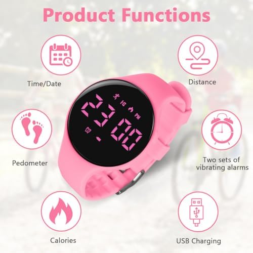 Flintronic Montre Digitale Enfant, Fitness Tracker Podomètre Montre avec Chronomètre Alarme Chronographe Étanche, Non Bluetooth, Montre-Bracelet de Fitness pour Cadeau Garçons Filles Enfant