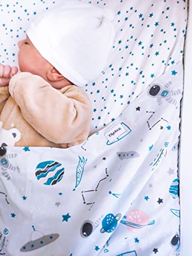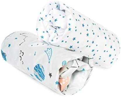 FlyIdeas Lot de 2 Draps Housse 160×80 cm pour Bebe en 100% Pure et Doux Coton Certifiè, Draps Ajustables pour Lit & Berceau avec Beaux Motifs Unisexes, Made in EU
