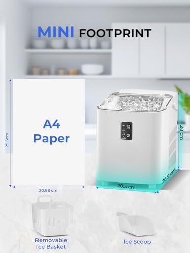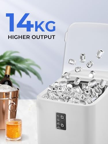 FOHERE Machine à glaçons, glaçons en 5 minutes, 14 kg en 24 heures, mini machine à glaçons autonettoyante, 2 tailles de glaçons pour cuisine, bureau, bar et fête, poignée facile à transporter, blanc
