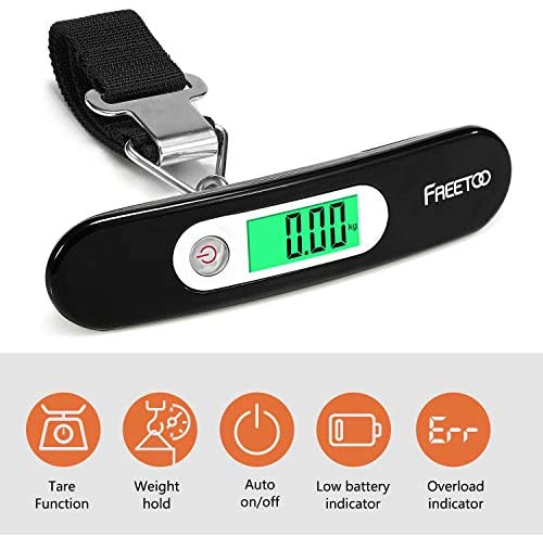 FREETOO Pese Bagage Electronique Balance Portable Pese Bagages Numérique Max 50Kg/110Lb (LB,g,Oz,kg) Balance électronique/Fonction Tare/Voyage/Shopping/Poste/Usage Domestique/Extérieur (Noir)
