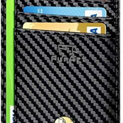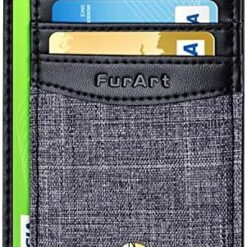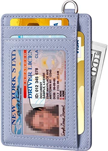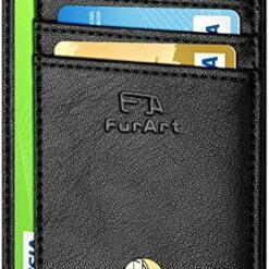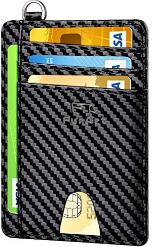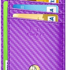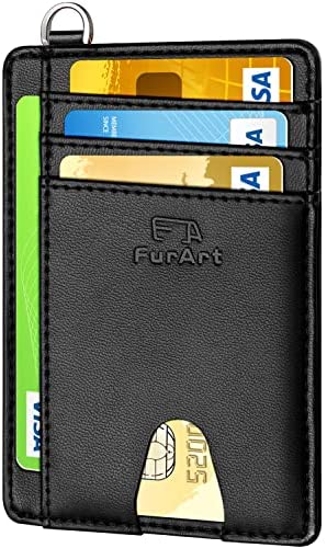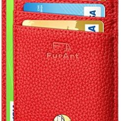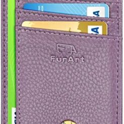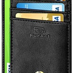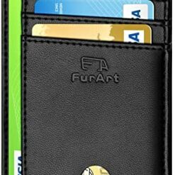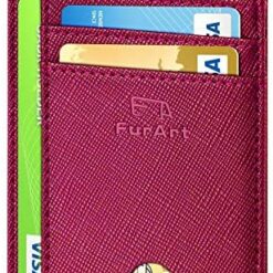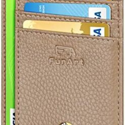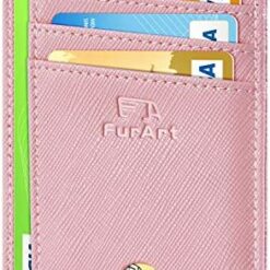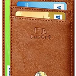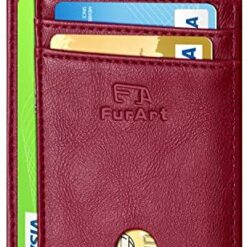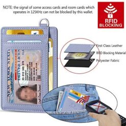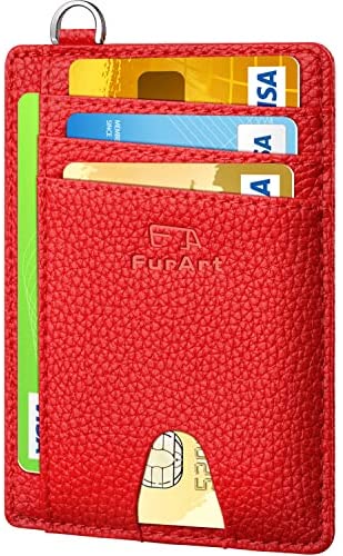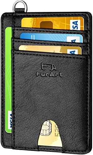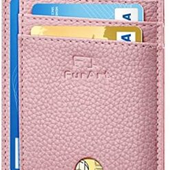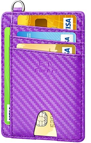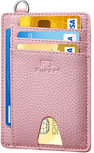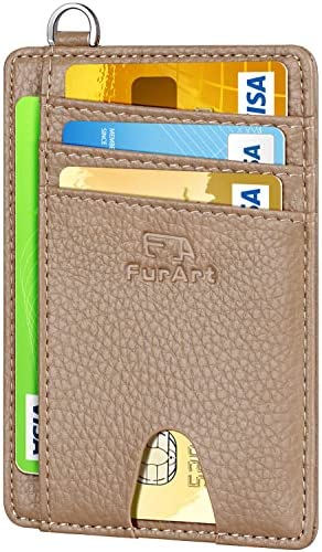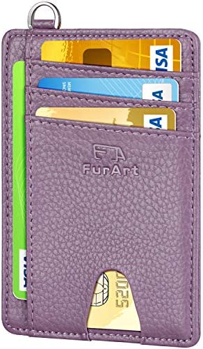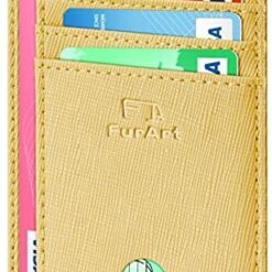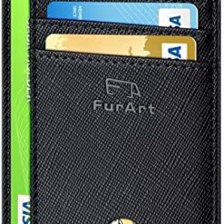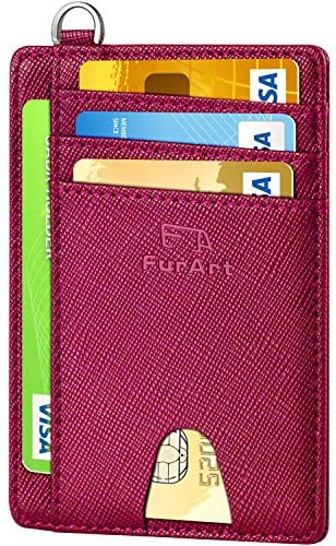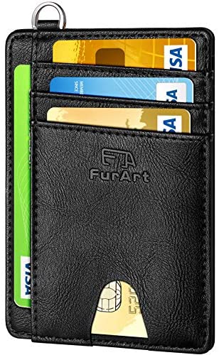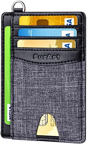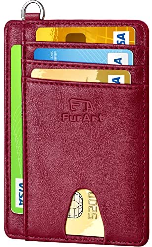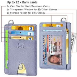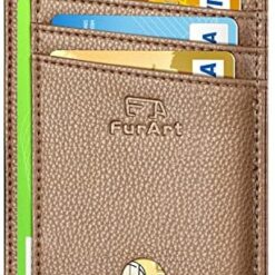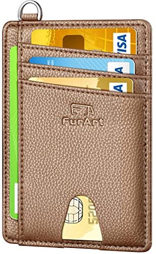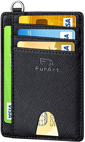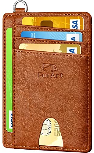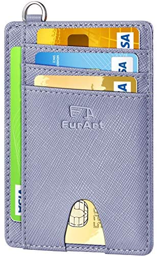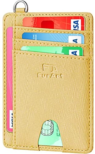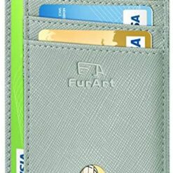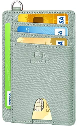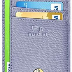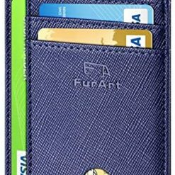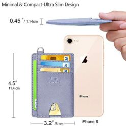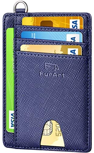 FurArt Portefeuille Minimaliste Fin, Porte-Cartes de Crédit avec Blocage Anti RFID, Les Femmes Hommes, Démontage Manille en D,Bleu canel Saffiano