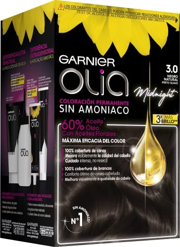 Garnier Olia coloration permanente aux huiles florales d’origine naturelle sans ammoniaque pour une odeur agréable – Natural Black (Midnight) 3.0