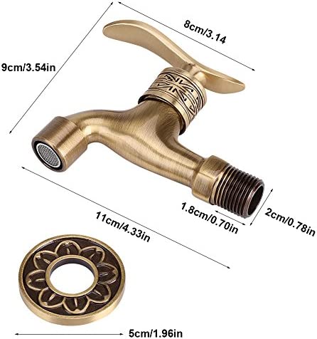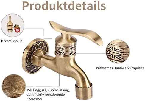 Générique Robinet Laiton Antique En Laiton Poignée Lessive Salle De Bains Montage Mural Lave-linge Robinet Extérieur Jardin Tuyau Simple Robinet Froid Long (#3)
