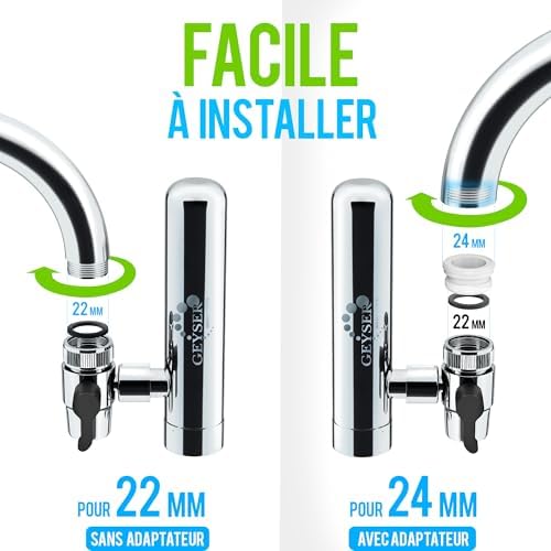GEYSER EURO – Filtre à eau pour robinet de cuisine, purificateur d’eau ultra-absorbant, montage longue durée: système avec 1 cartouche préinstallée + 1 cartouche supplémentaire