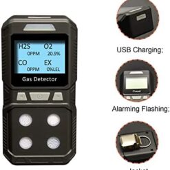 Gikaida Détecteur de 4 gaz Portable, H2S, O2, CO, EX – Prêt à l’emploi (Noir)