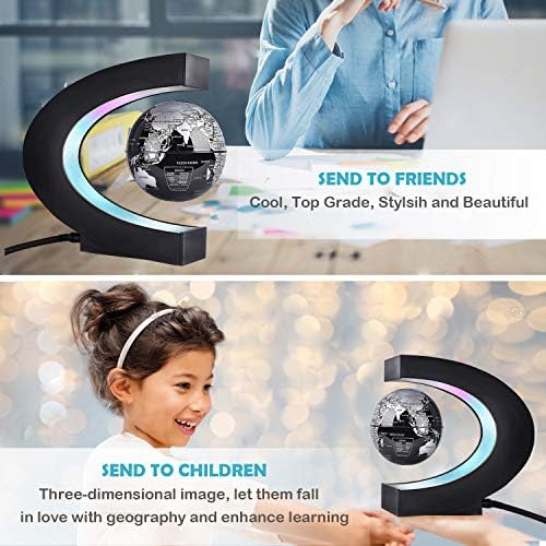 Globe Terrestre Lumineux Flottant,Globe Levitation Magnétique,Globe Terrestre Interactif avec Lumières LED pour Education/Enseignement Démo/Cadeau Creative et Festive/Décoration de Bureau
