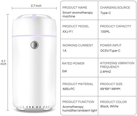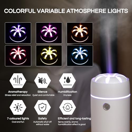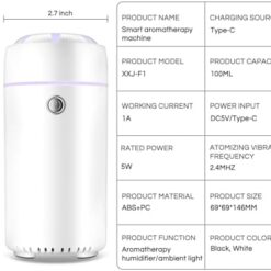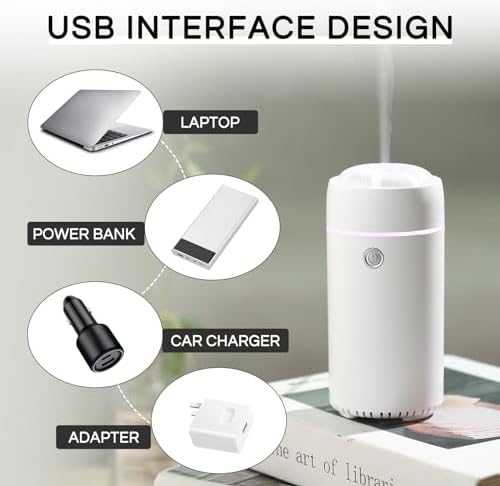 Gonlink Diffuseur Voiture Humidificateur, 100 ML Humidificateur d’air, Diffuseur Huiles Essentielles Voiture, Diffuseur Parfum Voiture, Maison, Bureau, Chambre à Coucher (Blanc)