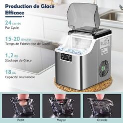 Soyez le premier à laisser votre avis sur “GOPLUS Machine à Glaçons, Capacité 18KG en 24H, 24 Glaçons en 15 Minutes, Réservoir 3,2L, Automatique Électrique Compact Portable, Fonction Auto-Nettoyage Argent”