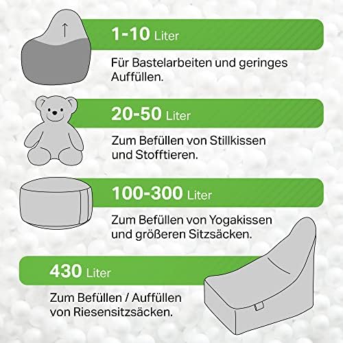 Green Bean© Perles EPS pour Remplissage de Pouf/Coussin/Oreiller d’allaitement 50 litres | Billes de Polystyrène Pack Recharge Matériel d’emballage Paquet Microperles