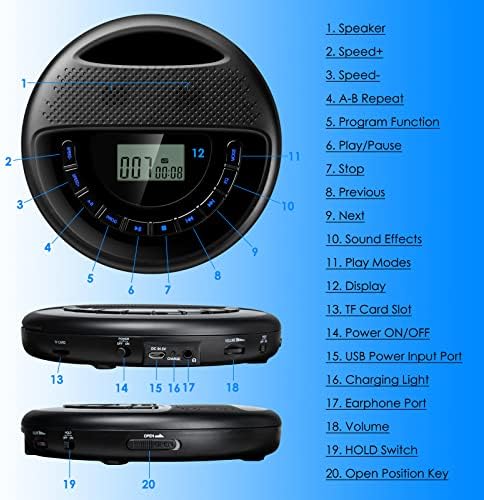 Soyez le premier à laisser votre avis sur “Gueray Lecteur CD Portable avec Haut-parleurs et Batterie Lithium Intégré de 1400 mAh et Casque Lecteurs de CD Auxiliaire sans Fil Walkman Soutenir la Lecture de la Carte TF”