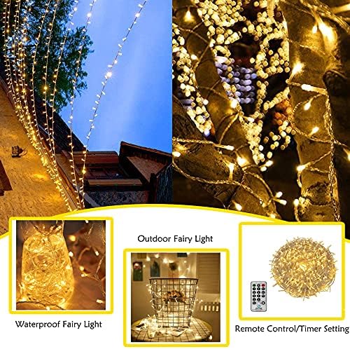 Guirlande lumineuse d’extérieur de 100m Longue guirlande lumineuse de Noël pour intérieur et Halloween avec télécommande et minuterie 8 modes pour Xmas arbre maison chambre jardin (blanc chaud)