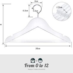 Homewit Cintres Blancs pour Bébé en Bois, Lot de 24 Cintre Enfant Bois avec Encoches et Barre, Antiglisse, avec encoches pivotantes à 360° pour Vêtements Enfants et Bébés – 30cm – Blanc