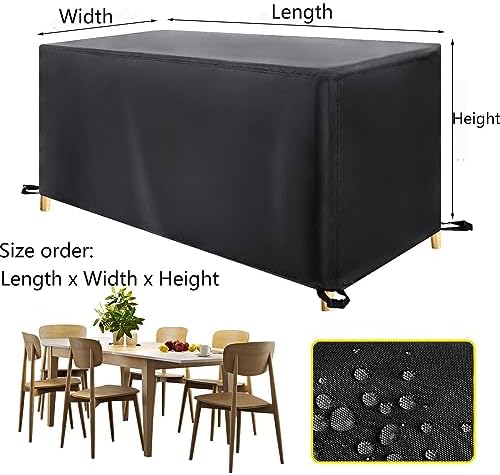 HSFFBHFBH Housse Table de Jardin – 240x130x75cm(LxWxH) Noir 420D Oxford Tissu Housse Table de Jardin Protection pour Tous Les Temps Imperméable Anti-UV avec Corde et Boucle Verrouillage