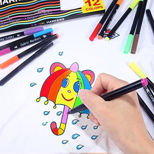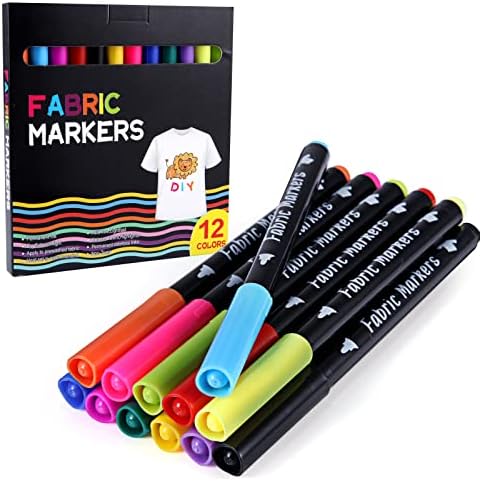ihaspoko Marqueurs Textile et Tissu, 12 Couleurs Marqueur Textile Permanent pour T-shirts Jeans Chapeaux Sacs en Toile Chaussures