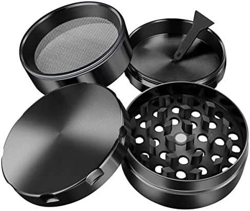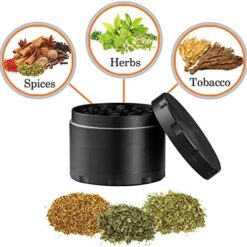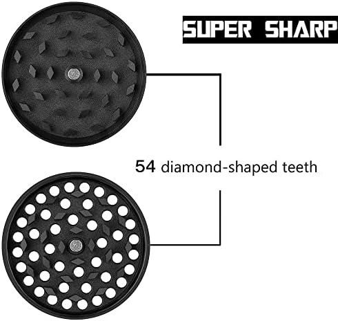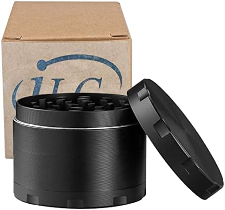 iLC Grinder pour Spice, Tobacco, & Herb Moulin Broyeur Avec Pollen Catcher 2″- Fabriqué en Alliage de zinc durable – 4 Pièces – dents en forme de diamant (Noir)
