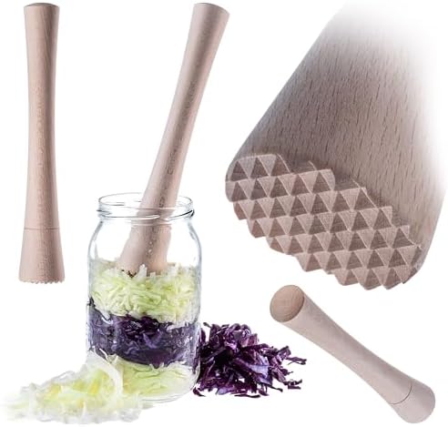 KADAX Pilon à choucroute en bois 24 x 4 cm pour fermentation de choucroute et kimchi