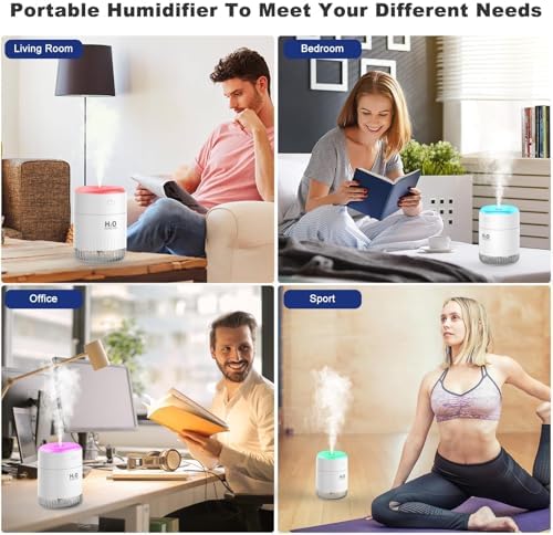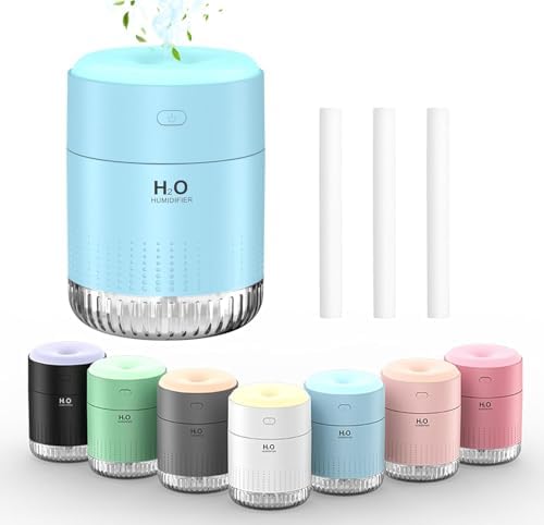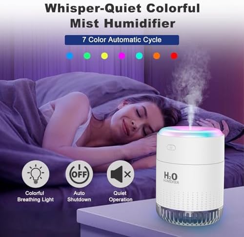 KARFUN Mini Humidificateur,350ml Portable Humidificateur d’air Chambre,Plantes Humidificateur d’air,Desktop Silencieux Mini Humidificateur avec 7 couleurs de lumière,Bureau,Chambre,Voiture, (Blanc)