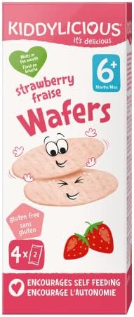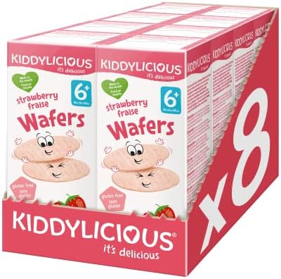 Kiddylicious Wafers Fraise I Dès 6 Mois I Sans Gluten & Sans Lait I 8 Packs de 16g (4 Sachets de 4g) | 128g